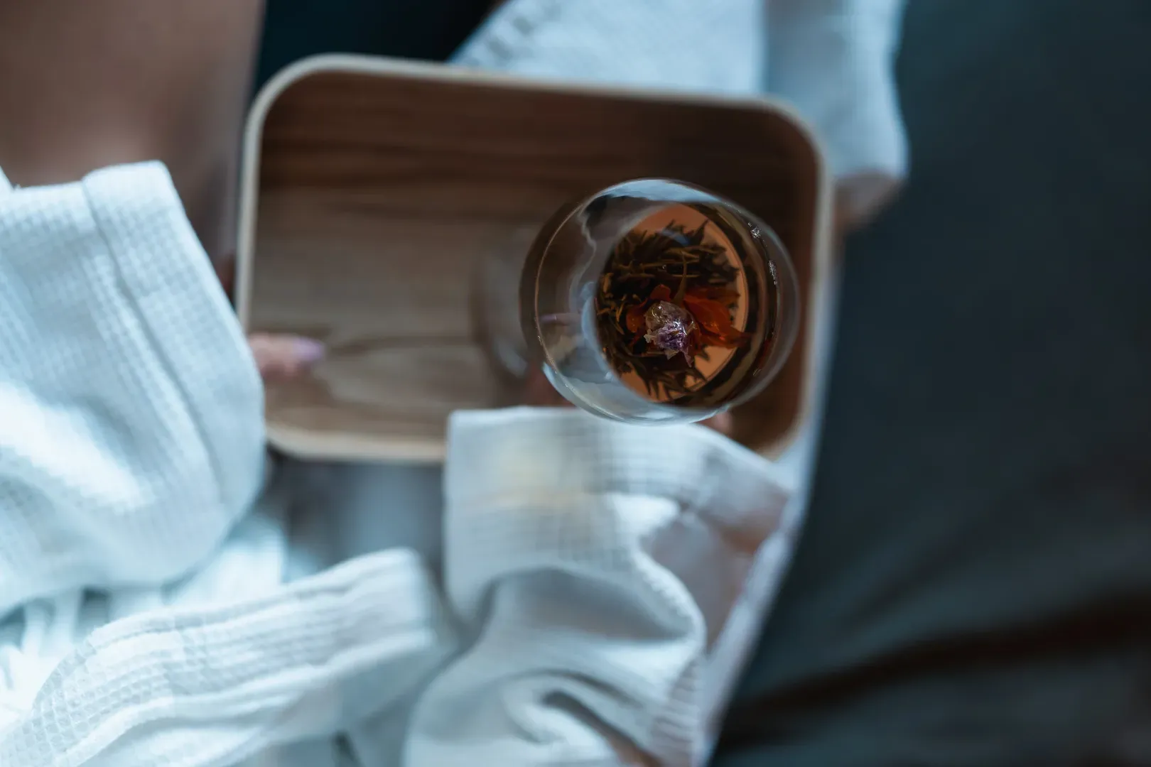 Escape the daily hustle and find your peace. Our wellness area offers various spots to unwind. Relax in the lounge chairs, on the heated loungers or four-poster bed, and in the robe garden.